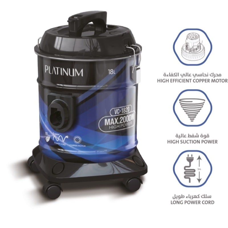 بلاتينيوم مكنسة اسطوانية - 18 ليتر - 2000 واط - أزرق